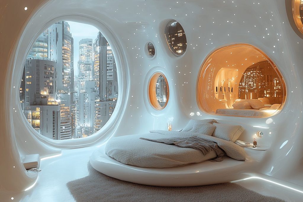 I sometimes wonder what a futuristic bedroom will look like. Will a bedroom centuries into the future look really different than the modern bedrooms we have now? I believe they will be but the question is, how much is the difference? I imagined a pod-like bedroom with futuristic designs and an amazing view of the cityscape. After a while, I decided to use Midjourney AI to generate them into images. I will probably start another similar AI artwork project but I will make them look more futuristic and maybe more surreal. A futuristic bedroom should look a bit quaint and technologically advanced (I think).